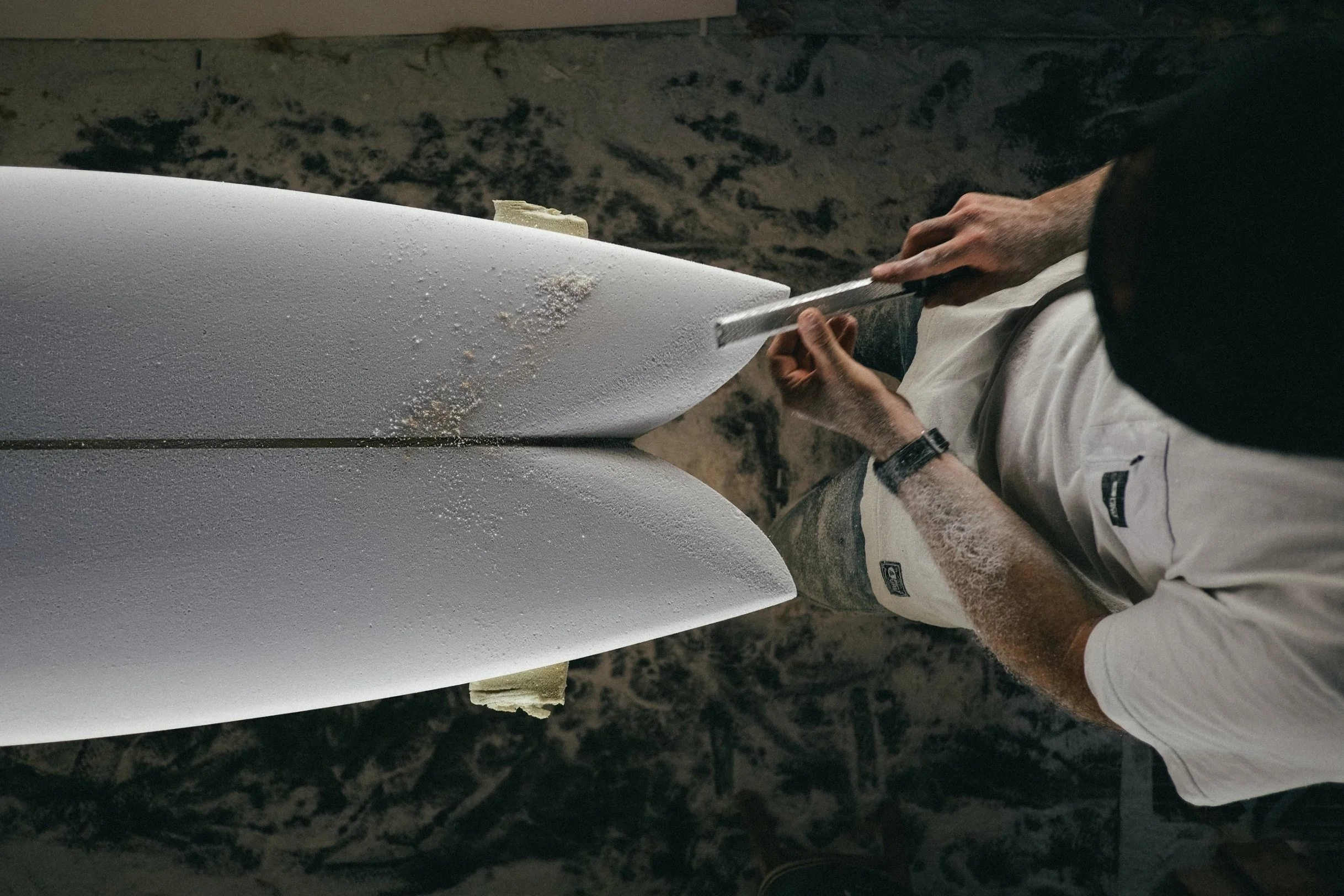 Tout a commencé en 2003, en shapant ma première planche à la main dans ma chambre, animée par la curiosité, la passion du surf et l’envie de comprendre la matière. Cette expérience fondatrice m’a conduit à me former aux matériaux composites pendant 3 ans, puis à créer mon propre atelier en 2008.